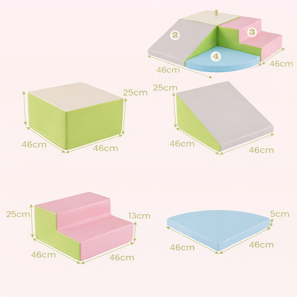 Weiche, stoßdämpfende Elemente schützen dein Kind bei jeder Bewegung – ideal für erste Rutsch- und Klettererfahrungen.